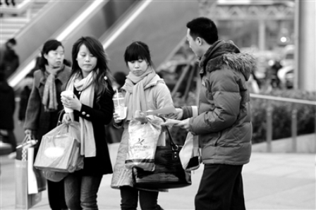 昨天下午4點(diǎn)多,小偉又來到西單文化廣場,手捏一疊厚厚的粉色A4紙張,向經(jīng)過的路人散發(fā)著自己制作的“尋人啟事”,短短幾分鐘內(nèi),就發(fā)出去十幾張,大部分女孩都將傳單拿走,只有一位女孩在看完傳單上的內(nèi)容后,又還給小偉,讓他哭笑不得。十幾分鐘后,小偉被城管執(zhí)法人員以“任何單位和個(gè)人不得擅自在公眾場合散發(fā)宣傳品”為由帶走,進(jìn)行了教育。 (王浩嬌)