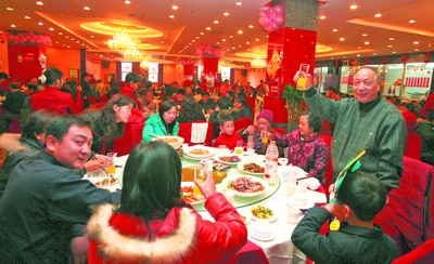 鄭龍(自由職業(yè)者):我家以前都是在家里吃團(tuán)年飯,現(xiàn)在變成了到外面一邊吃一邊談,F(xiàn)在城里人的消費(fèi)能力越來越強(qiáng)了,不管你是到哪里吃年夜飯,酒家也好,賓館也好,農(nóng)家樂也好,自己家里也好,關(guān)鍵是要吃得開心。