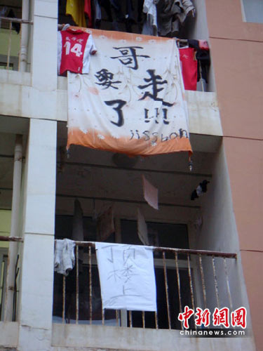 原來,湖南農(nóng)業(yè)大學(xué)一位臨近畢業(yè)的大四學(xué)生別出心裁地把“哥要走了”的“吶喊”寫在被子上,并懸掛于陽臺上,樓下現(xiàn)實(shí)版“跟帖”——“頂樓上”,被網(wǎng)友戲稱為“被子哥”。一時(shí)間該圖片在國內(nèi)某知名社交網(wǎng)站迅速躥紅,被網(wǎng)友廣泛分享“瘋”傳。