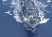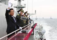 中國歷史上的首次多國海軍檢閱活動二十三日下午在青島附近黃海海域舉行。中國國家主席、中央軍委主席胡錦濤乘閱兵艦“石家莊”號導(dǎo)彈驅(qū)逐艦,檢閱中國海軍的潛艇、水面艦艇、海軍航空兵和海軍陸戰(zhàn)隊(duì)等作戰(zhàn)兵種,并檢閱了來訪的十四個(gè)國家的二十一艘艦艇。【中新網(wǎng)海軍閱兵專題】