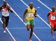 在韓國(guó)大邱舉行的田聯(lián)世界錦標(biāo)賽男子4×100米比賽中,有“閃電”之稱的名將博爾特壓軸,率領(lǐng)牙買加隊(duì)以刷新世界紀(jì)錄的成績(jī)奪冠。強(qiáng)勁對(duì)手美國(guó)隊(duì)在最后一棒交接時(shí)出現(xiàn)罕見(jiàn)失誤。