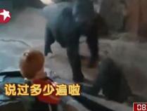 實(shí)拍:大猩猩“教”孩子“不和陌生人玩!