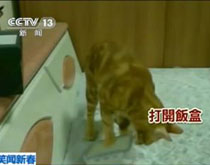實拍:貓咪開飯盒 自己動足取食