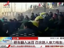 實(shí)拍:轎車(chē)墜入冰河 百余路人齊力拖車(chē)救人