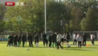 美女主持人直播球賽 被足球砸中腦袋