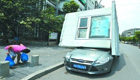 實拍:寶馬車追尾小貨車 百根鋼筋穿透車身