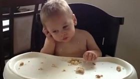 寶寶“打電話”不忘吃面包