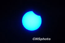 中國(guó)各地觀測(cè)日食奇觀:大連蒼穹上演日偏食