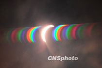 中國(guó)各地觀測(cè)日食奇觀:日全食重慶“生光”