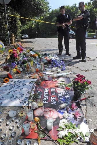 圖:警察在邁克爾·杰克遜的住宅附近警戒