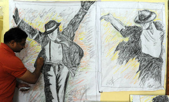 圖:印度畫(huà)家創(chuàng)作畫(huà)像紀(jì)念邁克爾·杰克遜