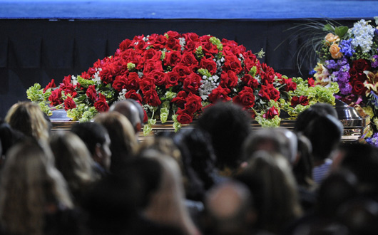杰克遜公眾追思會(huì):邁克爾的遺體放置會(huì)場(chǎng)中央