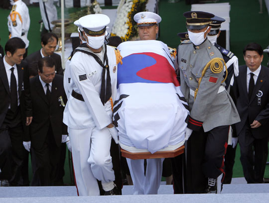 圖:韓國前總統(tǒng)金大中入殮儀式舉行