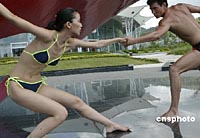 一年一度的“新絲路中國模特大賽總決賽”2006年9月12日晚在海南三亞市舉行,來自全國各省、市、自治區(qū)15個分賽區(qū)的66名選手云集三亞,傾情展示美麗。新絲路有中國模特的搖籃之稱,為許多夢想的少男少女開辟了通往國際模特舞臺的通途。新絲路模特大賽自1989年創(chuàng)辦至今,足跡遍布全國各地,品牌蜚聲海內(nèi)外。自2000年,新絲路中國模特大賽總決賽都選定在三亞這個美麗城市舉行,藍天白云,椰樹碧海。今年大賽主題命名為“玩美·三亞”。中新社 錢興強 攝
