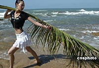 模特在“天涯海角”拍攝外景