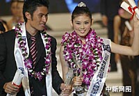 參賽的男女選手在三亞拍照