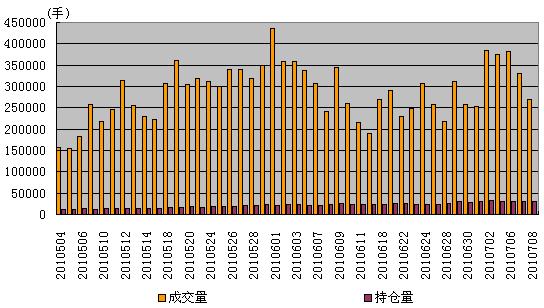 中新網(wǎng)7月8日電(王文舉) 今日四個(gè)期指合約全部高開低走,除遠(yuǎn)月合約IF1012微跌收盤外,其他合約均紅盤報(bào)收,全天振幅不大,總持倉量較前一交易日微增94手,持續(xù)高位運(yùn)行,不過總成交量延續(xù)了昨日的回落態(tài)勢。