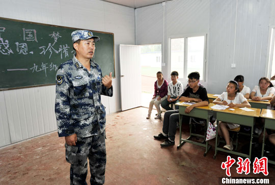 5月14日,在四川蘆山地震震中龍門鄉(xiāng)的晨陽(yáng)希望學(xué)校九年級(jí)二班的板房教室里,舉辦了一次特殊的班會(huì)。安源 攝