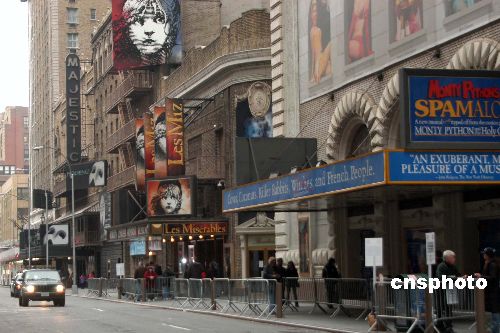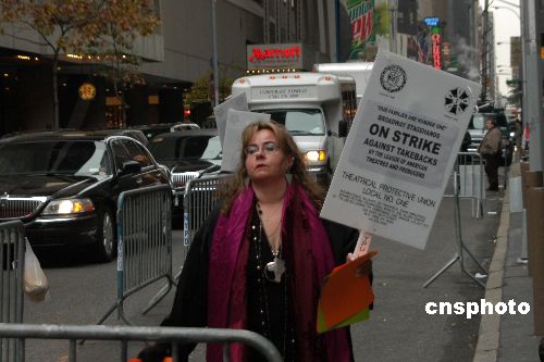 當(dāng)?shù)貢r間十一月十二日的紐約百老匯街在罷工中榮景不再、一片蕭條。紐約舞臺工作人員工會與舞臺劇制作人聯(lián)盟之間的談判至周一仍然處于僵持狀態(tài),舞臺工作人員繼續(xù)罷工,目前罷工抗議活動已經(jīng)進入第三天,這使百老匯包括《獅子王》、《歌劇魅影》等在內(nèi)的27個舞臺劇被迫停演。罷工導(dǎo)致每日損失在一千七百萬美元以上。中新社發(fā) 劉小青 攝