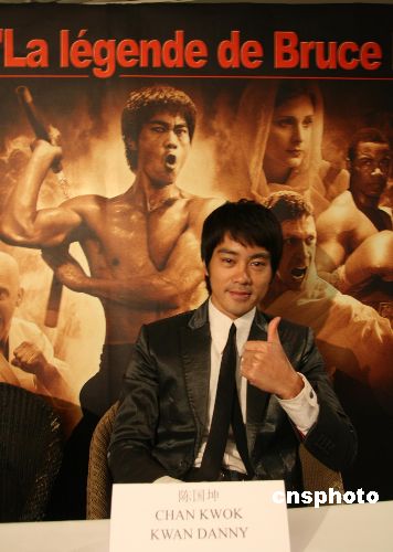 電視連續(xù)劇《李小龍傳奇》是中國(guó)國(guó)際電視總公司為明年奧運(yùn)會(huì)推出的電視劇大片。該片11月19日晚在巴黎舉行造勢(shì)活動(dòng)。因?yàn)椤伴L(zhǎng)得像、有武功、會(huì)表演”而在劇中出演李小龍的陳國(guó)坤也現(xiàn)身巴黎。這部投資額達(dá)五百萬(wàn)歐元的電視劇,劇中場(chǎng)面遍及中、美、歐三大洲。電視劇分五十集,現(xiàn)已殺青。中新社發(fā) 鐘誠(chéng) 攝