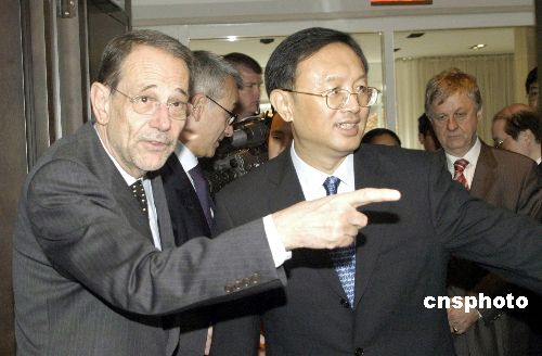 當(dāng)?shù)貢r(shí)間11月26日,中國外交部長(zhǎng)楊潔篪(右)在美國首都華盛頓會(huì)見了前來參加中東和會(huì)的歐盟理事會(huì)秘書長(zhǎng)兼歐盟負(fù)責(zé)外交和安全政策的高級(jí)代表索拉納。中新社發(fā) 邱江波 攝