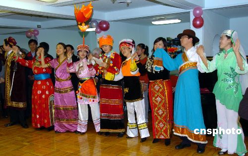 留學生代表穿著少數民族服飾表演節(jié)目。
