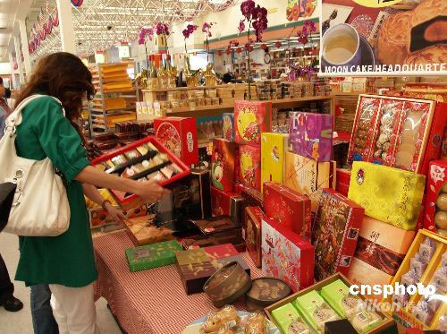 當(dāng)?shù)貢r(shí)間8月27日,顧客在華人超市選購(gòu)月餅。中秋節(jié)將至,美國(guó)洛杉磯各大華人超級(jí)市場(chǎng)的中秋月餅已上架,月餅來自中國(guó)大陸、香港、臺(tái)灣,也有本地生產(chǎn)的月餅,品種繁多,貨量充足,海外華人慶中秋氛圍濃厚。中新社發(fā) 盧威 攝
