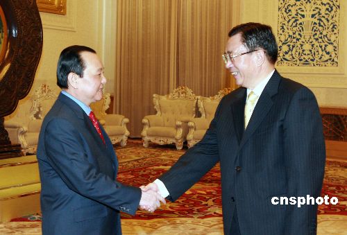 十一月二十日,中共中央政治局常委、中央紀(jì)委書記賀國(guó)強(qiáng)在北京人民大會(huì)堂會(huì)見越共中央政治局委員黎清海。中新社發(fā) 廖文靜 攝