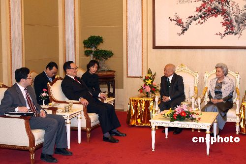 2月4日,受中國國家主席胡錦濤和國務院總理溫家寶的委托,國務委員唐家璇專程看望在北京的柬埔寨太皇諾羅敦·西哈努克和太后諾羅敦·莫尼列·西哈努克。中新社發(fā) 盛佳鵬 攝