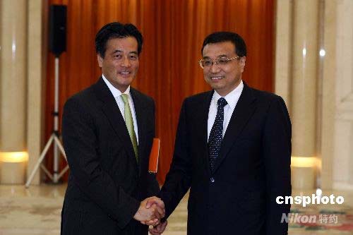 7月16日,中共中央政治局常委、國(guó)務(wù)院副總理李克強(qiáng)在北京人民大會(huì)堂會(huì)見日本民主黨副黨首岡田克也。中新社發(fā) 盛佳鵬 攝