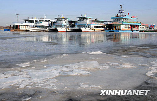 11月16日,哈爾濱市輪渡公司的所有渡客船全部安全返航,停泊在哈爾濱市道里區(qū)九站船塢。當(dāng)日,哈爾濱市輪渡公司渡客408船帶著碼頭船,從哈爾濱市道外碼頭返回到道里九站船塢,這標(biāo)志著運(yùn)行在松花江上的所有客貨輪全線停航。據(jù)了解,受寒冷空氣影響,松花江沿線氣溫驟降,江水開始結(jié)冰進(jìn)入封江期。 新華社發(fā)(張清云 攝)
