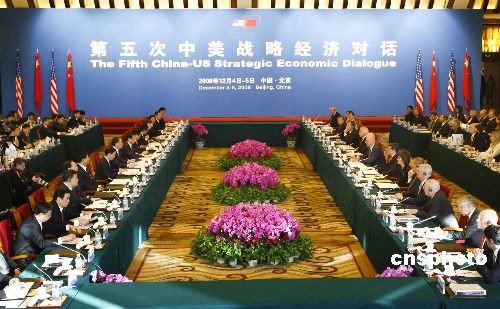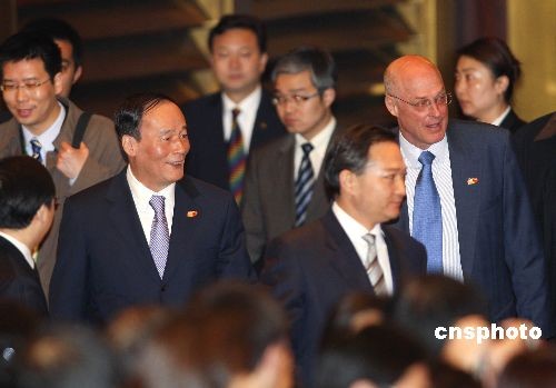 12月4日上午,第五次中美戰(zhàn)略經(jīng)濟(jì)對話在北京釣魚臺國賓館開幕,中國國務(wù)院副總理王岐山和美國財(cái)政部長保爾森作為兩國元首的特別代表共同主持對話。 中新社發(fā) 盛佳鵬 攝