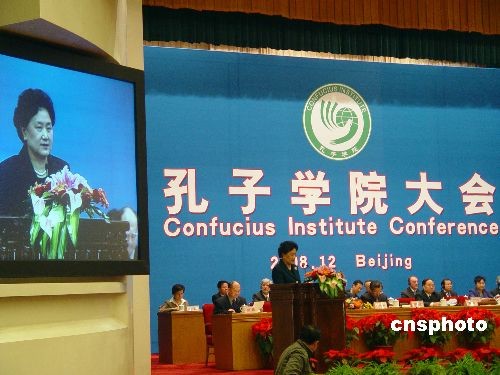 每年舉行一次的孔子學(xué)院大會十二月九日下午在北京人民大會堂開幕,中共中央政治局委員、國務(wù)委員劉延?xùn)|在講話中對下一步如何辦好孔子學(xué)院,提出了四點建議,即堅持辦學(xué)宗旨、注意提高質(zhì)量、鼓勵探索創(chuàng)新、推動平等合作。本屆孔子學(xué)院大會的主題為“孔子學(xué)院與全球化教育”,來自七十八個國家和地區(qū)的約五百位大學(xué)校長和孔子學(xué)院代表將在今后的會議中圍繞漢語推廣與世界多元文化發(fā)展、孔子學(xué)院對大學(xué)和當(dāng)?shù)氐呢暙I等議題進行廣泛交流。中新社發(fā) 應(yīng)妮 攝