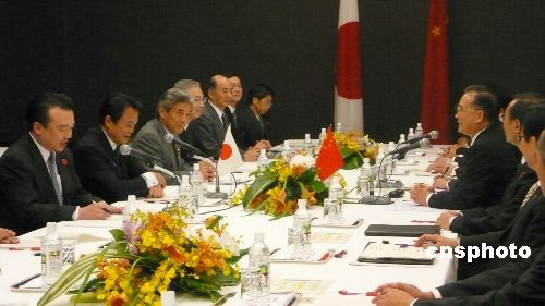 當(dāng)?shù)貢r(shí)間12月13日下午2點(diǎn)許,中國總理溫家寶與日本首相麻生太郎在位于福岡的九州國立博物館舉行會見。中新社發(fā) 朱沿華 攝