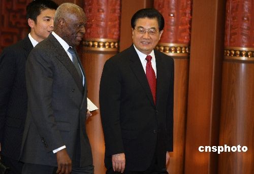 12月17日晚,中國(guó)國(guó)家主席胡錦濤在北京人民大會(huì)堂舉行儀式,歡迎安哥拉共和國(guó)總統(tǒng)若澤·愛(ài)德華多·多斯桑托斯訪華。多斯桑托斯總統(tǒng)是應(yīng)中國(guó)國(guó)家主席胡錦濤的邀請(qǐng),12月16日晚乘專(zhuān)機(jī)抵達(dá)北京,開(kāi)始對(duì)中國(guó)進(jìn)行為期4天的國(guó)事訪問(wèn)。中新社發(fā) 任晨鳴 攝