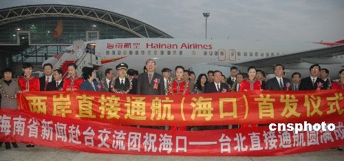 十二月二十日上午八時(shí),海航HU七九四七航班載著一百二十名旅客從?谄痫w,兩個(gè)小時(shí)后將抵達(dá)臺(tái)北。瓊臺(tái)當(dāng)日首開兩島直航,將為兩個(gè)姊妹島進(jìn)一步交流合作開啟坦途。海南新聞赴臺(tái)交流團(tuán)也搭乘直航班機(jī)前往臺(tái)灣訪問。中新社發(fā) 王辛莉 攝