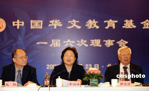 十二月二十三日,國(guó)僑辦主任李海峰(中)、全國(guó)政協(xié)原副主席羅豪才(右)、國(guó)僑辦副主任趙陽(yáng)出席中國(guó)華文教育基金會(huì)理事會(huì)。當(dāng)日,中國(guó)華文教育基金會(huì)一屆六次理事會(huì)在北京召開,會(huì)議選舉第十一屆全國(guó)政協(xié)委員、中國(guó)海外交流協(xié)會(huì)副會(huì)長(zhǎng)林文肯任中國(guó)華文教育基金會(huì)理事長(zhǎng)。張偉超由于年齡原因,不再擔(dān)任理事長(zhǎng)。中新社發(fā) 廖攀 攝