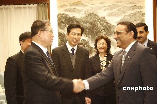 1月20日至23日,巴基斯坦總統(tǒng)扎爾達(dá)里將先后訪問湖北和上海,考察中國水利、農(nóng)業(yè)、金融等領(lǐng)域發(fā)展情況。圖為湖北省省長李鴻忠會見扎爾達(dá)里總統(tǒng)。中新社發(fā) 艾啟平 攝