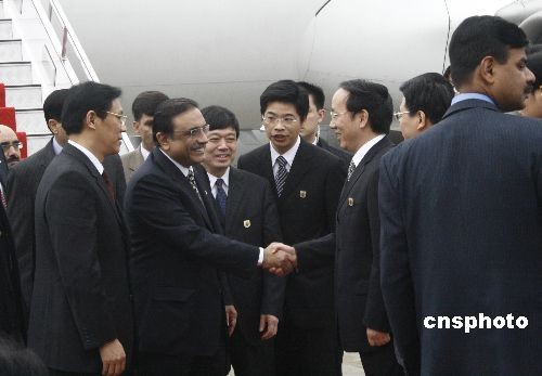 2月22日中午,在湖北進(jìn)行友好訪問的巴基斯坦總統(tǒng)扎爾達(dá)里乘機(jī)抵達(dá)湖北宜昌市。在宜昌市期間,扎爾達(dá)里將與中國三峽總公司舉行項(xiàng)目會談,并參觀三峽工程紀(jì)念館和三峽大壩等。圖文扎爾達(dá)里總統(tǒng)與宜昌市長李樂成握手。中新社發(fā) 艾啟平 攝