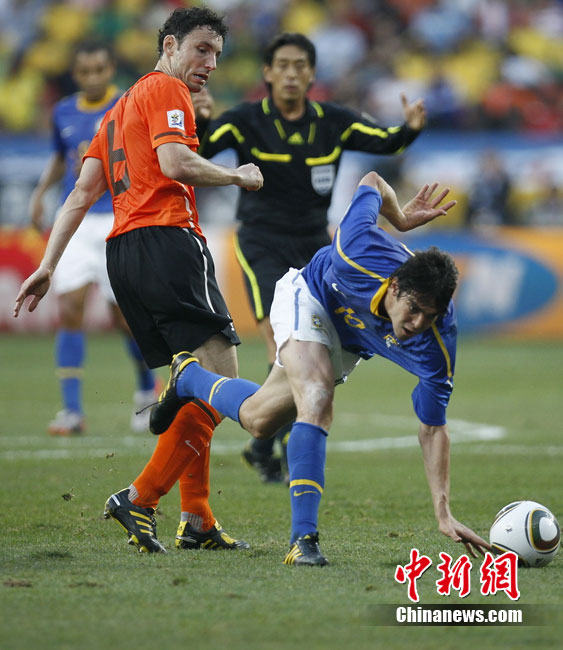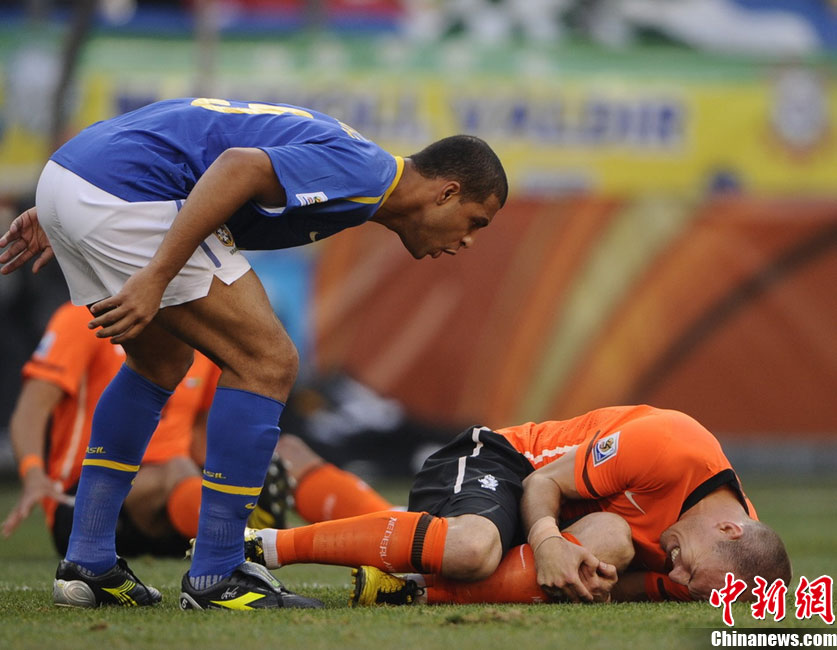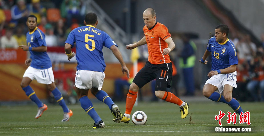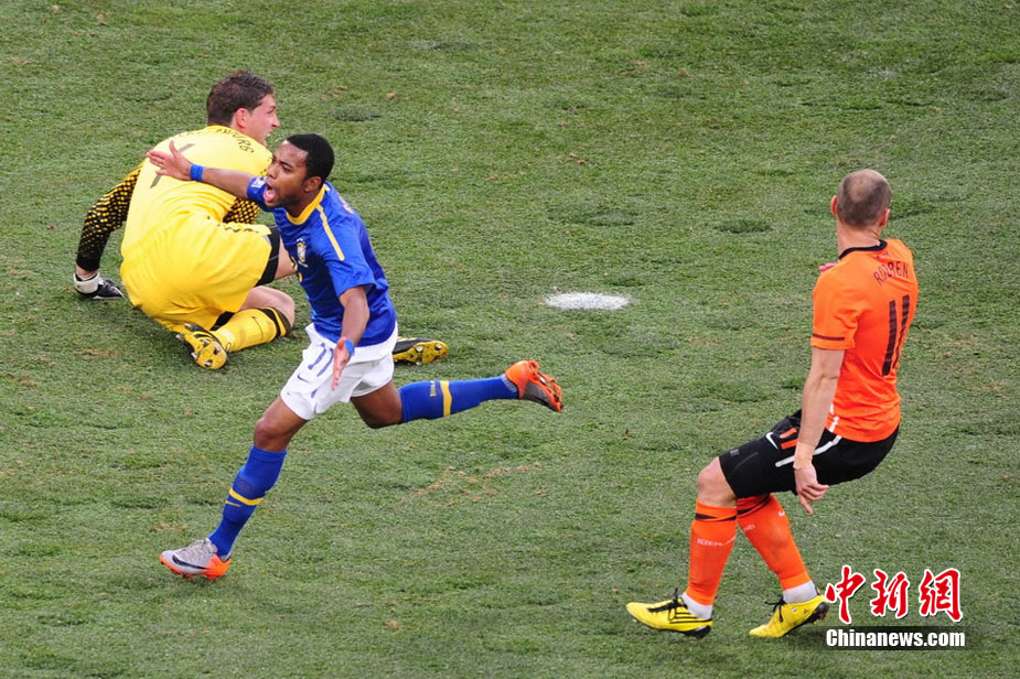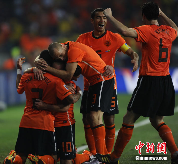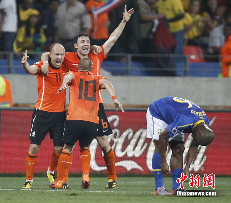 7月2日晚,南非世界杯進(jìn)行了1/4決賽的首場比賽,由荷蘭隊(duì)迎戰(zhàn)巴西。雖然羅比尼奧在上半場率先破門,但下半場憑借胡安的烏龍球和斯內(nèi)德頭槌建功,荷蘭隊(duì)2-1逆轉(zhuǎn)擊敗巴西隊(duì),率先挺進(jìn)四強(qiáng)。