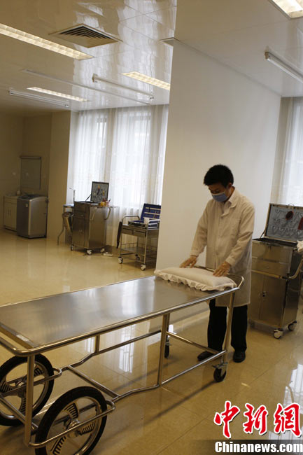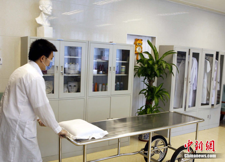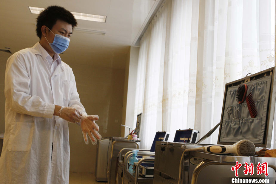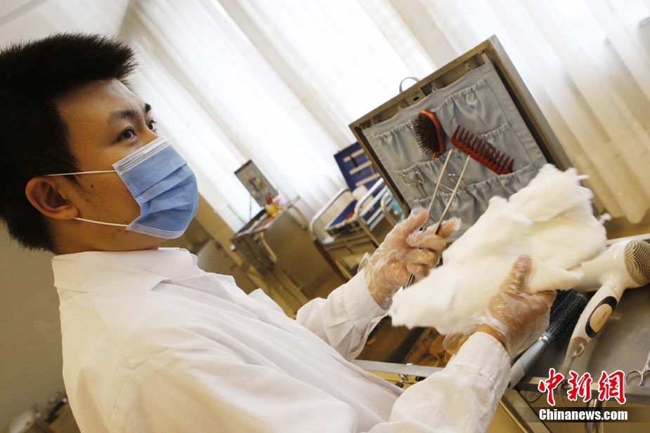 近期,北京團(tuán)市委正在開展“探訪青年勞動(dòng)者”活動(dòng)。二十八歲的八寶山殯儀館整容師張洋便是其中之一。他自二〇〇五年進(jìn)入八寶山殯儀館工作以來,勤學(xué)苦練,刻苦鉆研,勇于創(chuàng)新,共為三千余位逝者提供了高質(zhì)量的整容服務(wù),圓滿完成了二零一零年八名駐海地維和人員不幸遇難后遺體整容工作等二十余次重大任務(wù)。在剛剛結(jié)束的全國民政行業(yè)職業(yè)技能競賽中奪得大賽一等獎(jiǎng)第一名。中新社記者 任海霞 攝