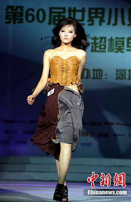 9月11日,32位佳麗在深圳東部華僑城參加第60屆世界小姐中國區(qū)超模賽,選手通過泳裝、環(huán)保裝、晚禮服展示,22號(hào)佳麗顧燕君(中)奪冠,12號(hào)孫丹梓(右)和29號(hào)鐘嬌(左)分獲亞軍季軍。中新社記者 陳文 攝