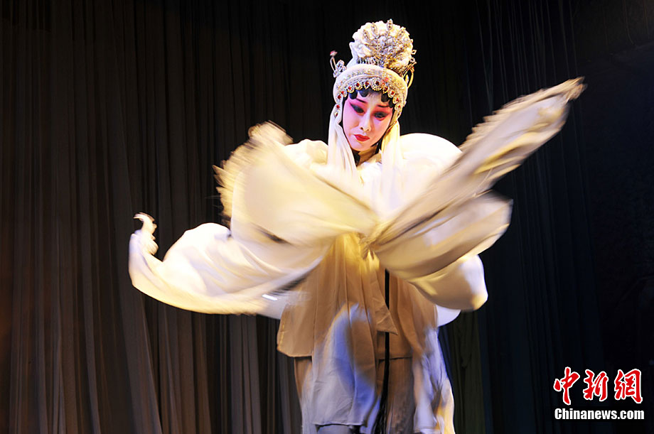 10月18日至22日,甘肅秦劇團(tuán)到基層為鄉(xiāng)下人唱“大戲”,演員們唱念做打演,招招真功夫給鄉(xiāng)親們送來(lái)了一場(chǎng)場(chǎng)戲曲大餐。《三滴血》、《火焰駒》、《竇娥冤》等演出,一出出膾炙人口的傳統(tǒng)劇目風(fēng)格各異,精彩紛呈,鄉(xiāng)親們?cè)谝淮未蔚那楣?jié)跌宕中笑聲不止、掌聲不斷。秦腔又稱亂彈,源于西秦腔,流行于中國(guó)西北的陜西、甘肅、青海、寧夏、新疆等地,又因其以棗木梆子為擊節(jié)樂(lè)器,所以又叫“梆子腔”,俗稱“桄桄子”,經(jīng)國(guó)務(wù)院批準(zhǔn)列入第一批國(guó)家級(jí)非物質(zhì)文化遺產(chǎn)名錄。楊艷敏 攝