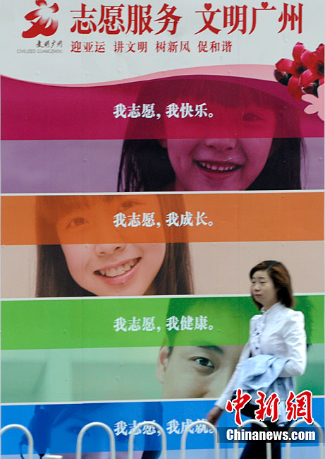 11月9日,廣州亞運會的志愿者們前往天河體育中心服務。中新社記者 賈國榮 攝