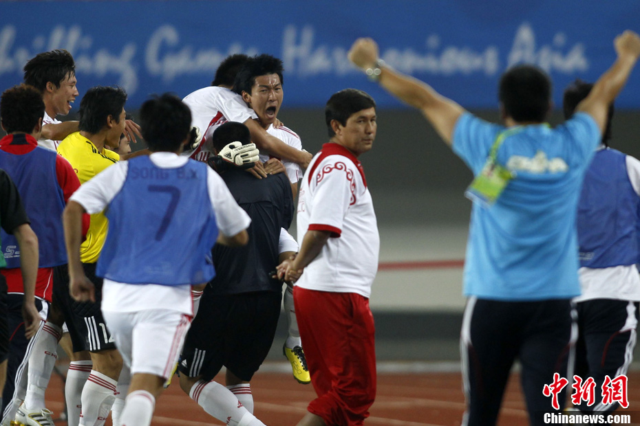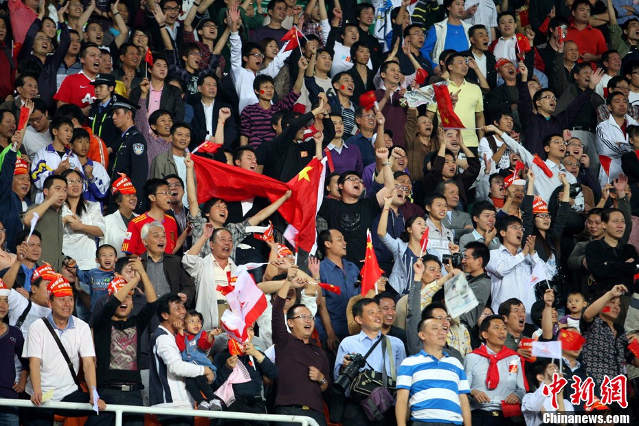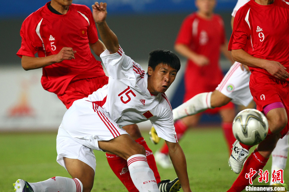 11月10日晚,廣州亞運(yùn)會(huì)男子足球小組賽A組第19場(chǎng)中國(guó)與吉爾吉斯斯坦的比賽在廣州天河體育場(chǎng)進(jìn)行,最終中國(guó)隊(duì)2:1戰(zhàn)勝吉爾吉斯斯坦隊(duì)。中新社記者 富田 攝