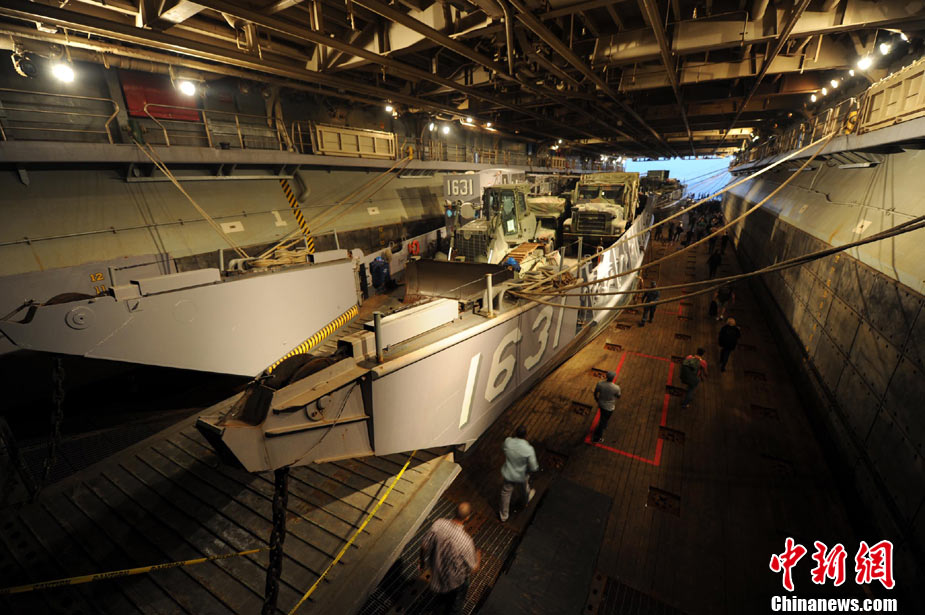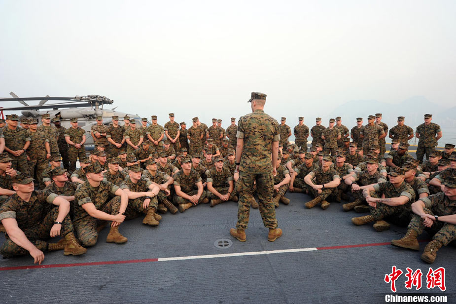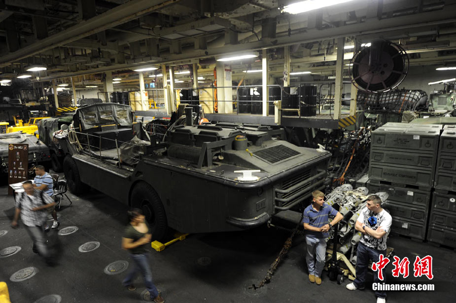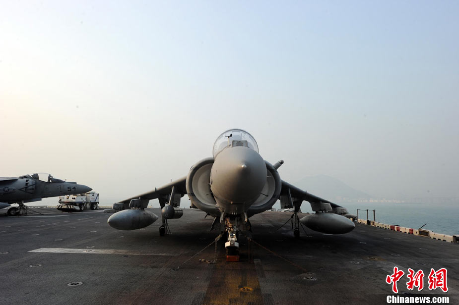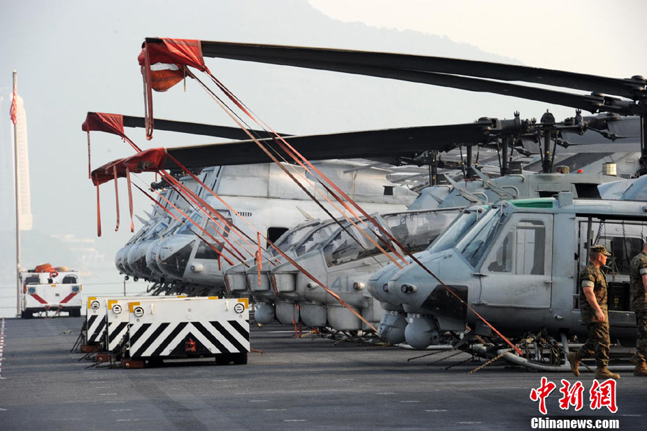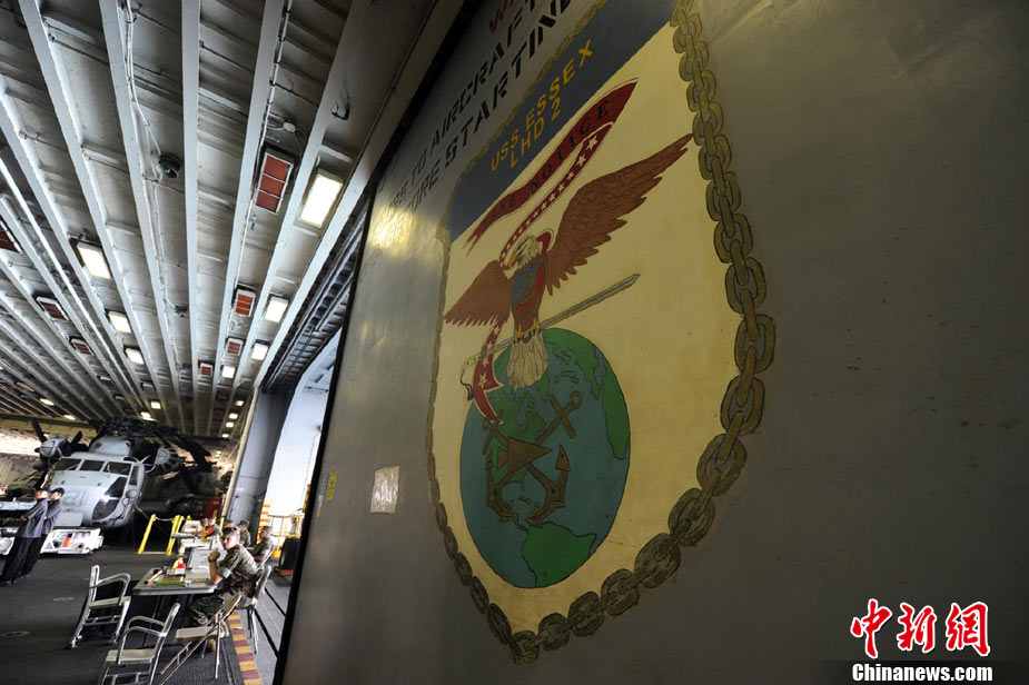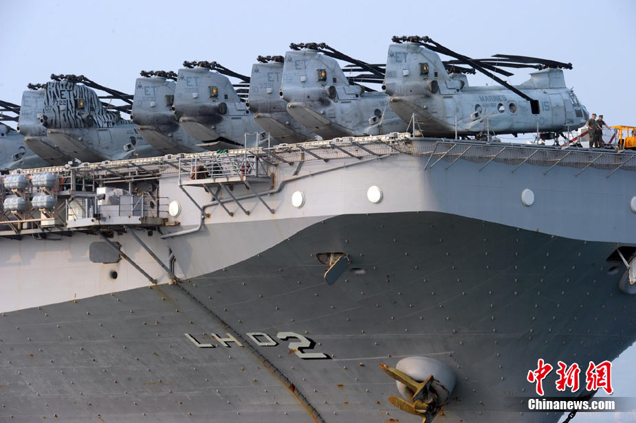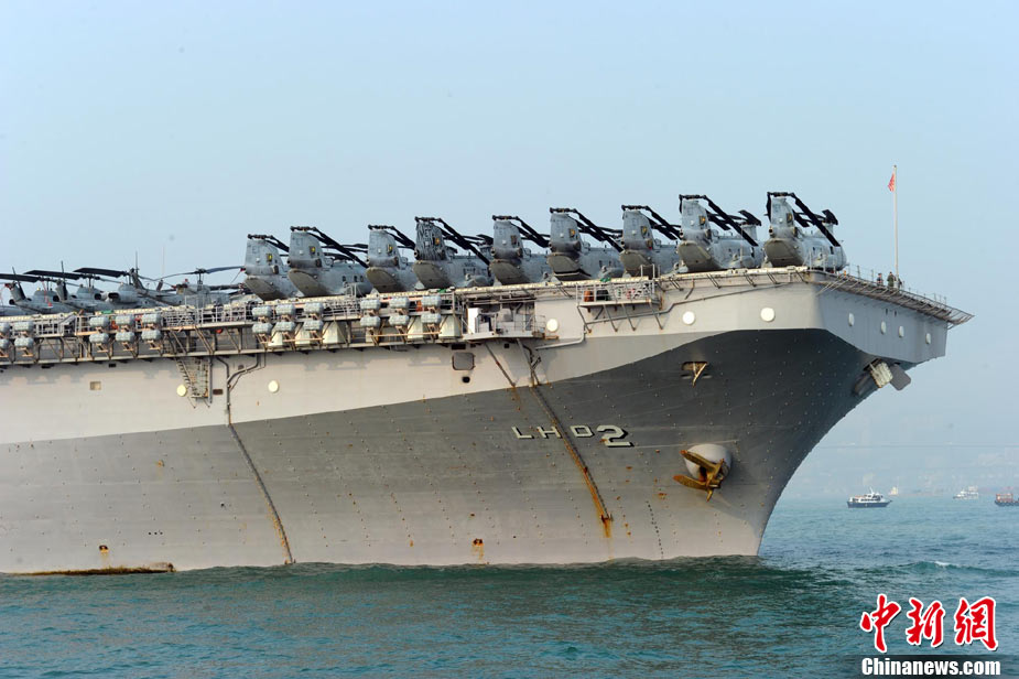 有“鋼鐵短吻鱷”之稱的“埃塞克斯”號(hào),搭載有AV-8B“鷂”式戰(zhàn)機(jī)、CH-53E“海上種馬”直升機(jī)、CH-46E“海上騎士”直升機(jī)、UH-1N超級(jí)休伊直升機(jī)等逾30架各型機(jī)型,以及超過2200名船員和海軍官兵。中新網(wǎng)記者 鄭祚聲 攝