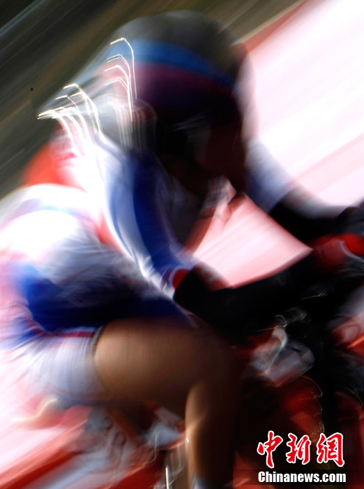 11月20日,廣州亞運會男子公路個人計時賽中的動感瞬間,仿佛將人帶入一個新奇的科幻世界。中新社記者 杜洋 攝