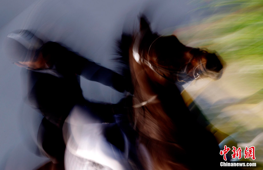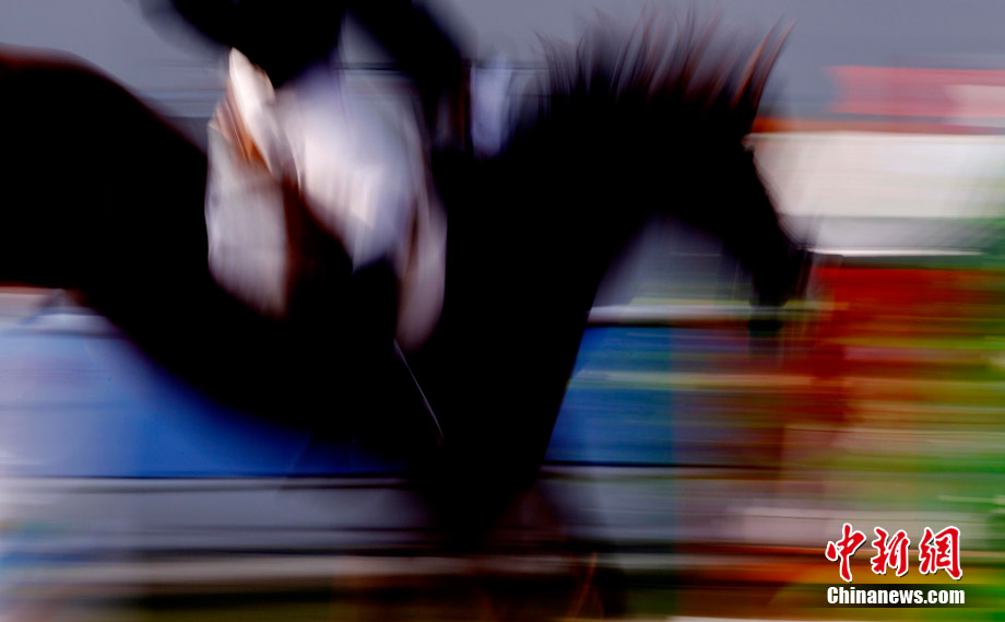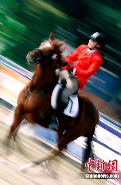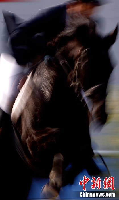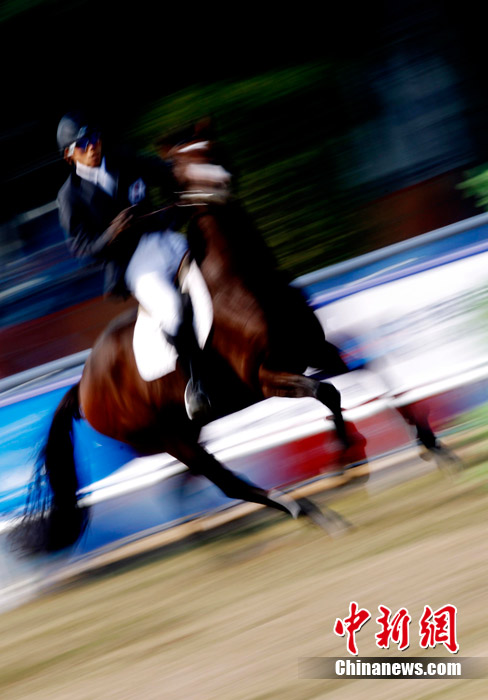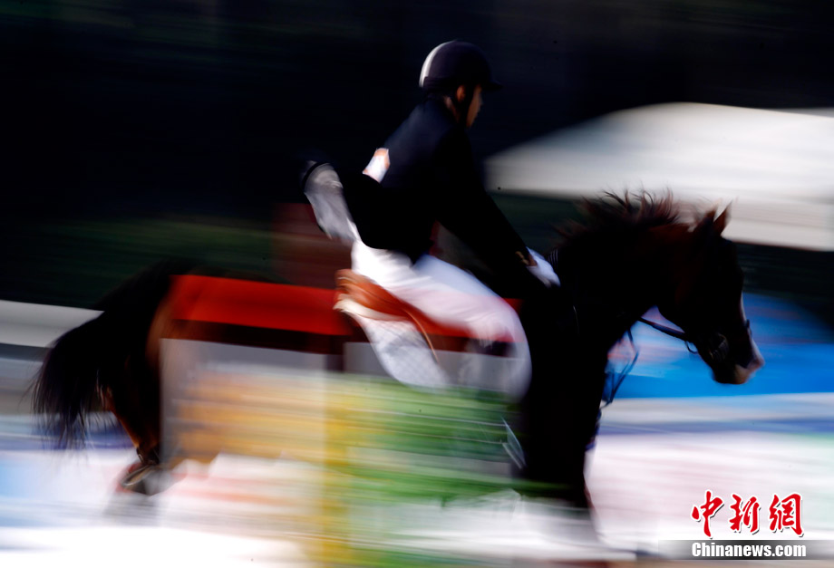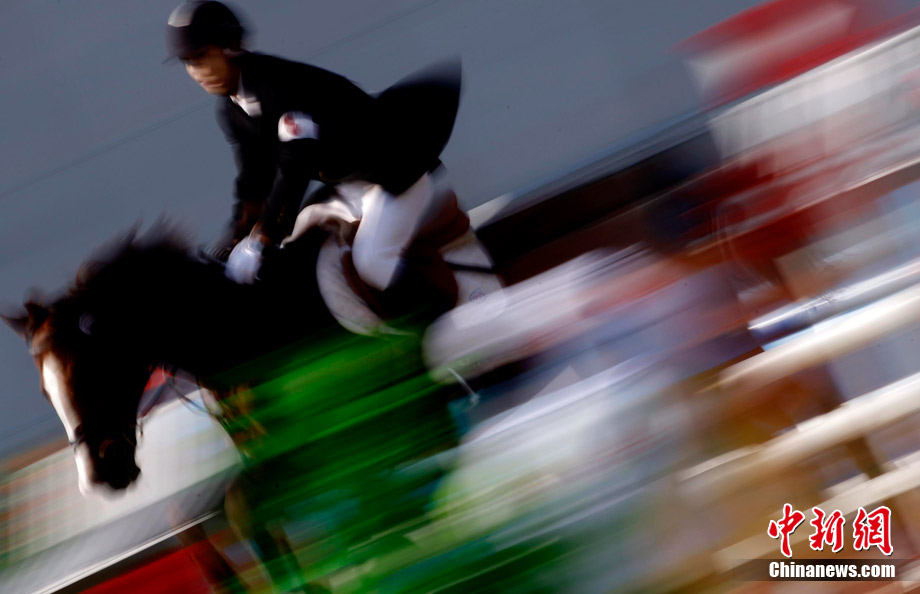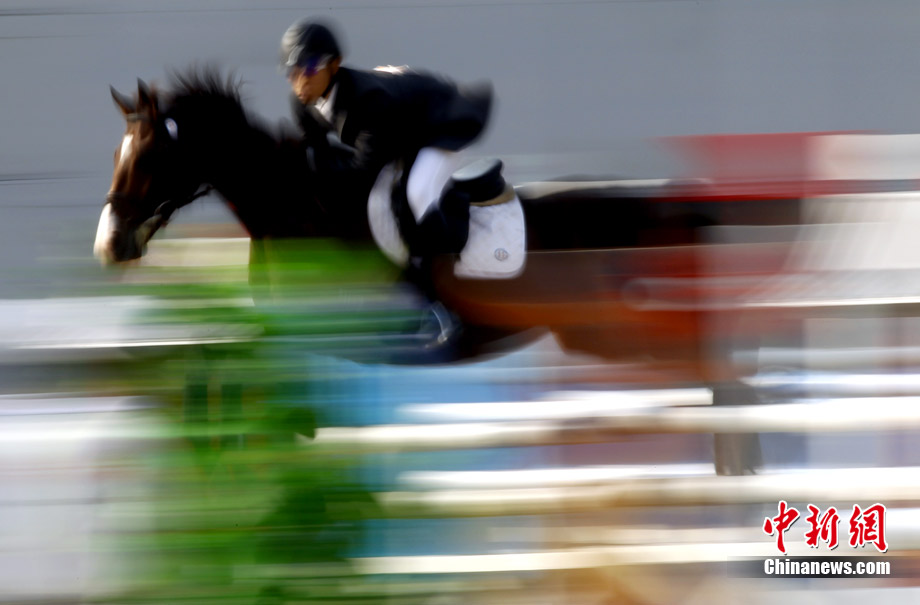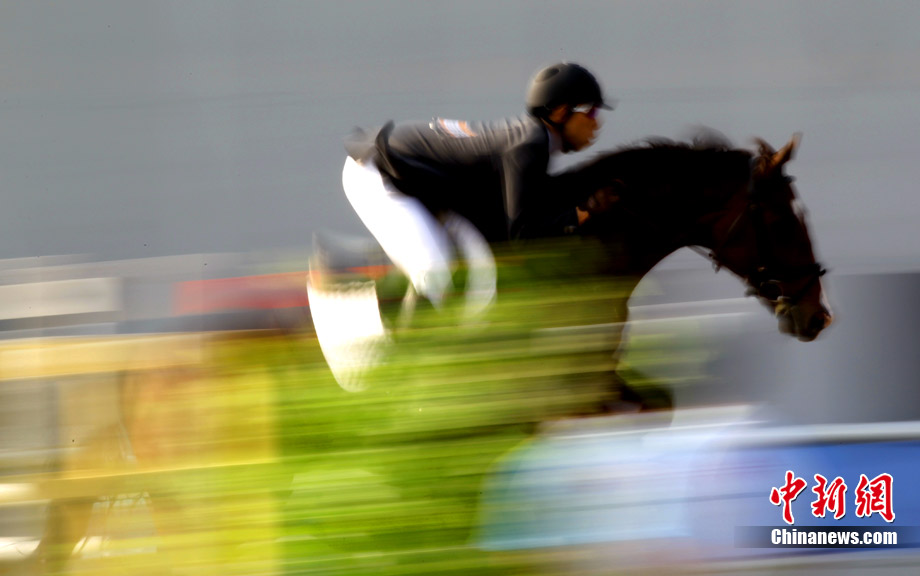 2010廣州亞運(yùn)會現(xiàn)代五項馬術(shù)賽場精彩瞬間。中新社記者 杜洋 攝
