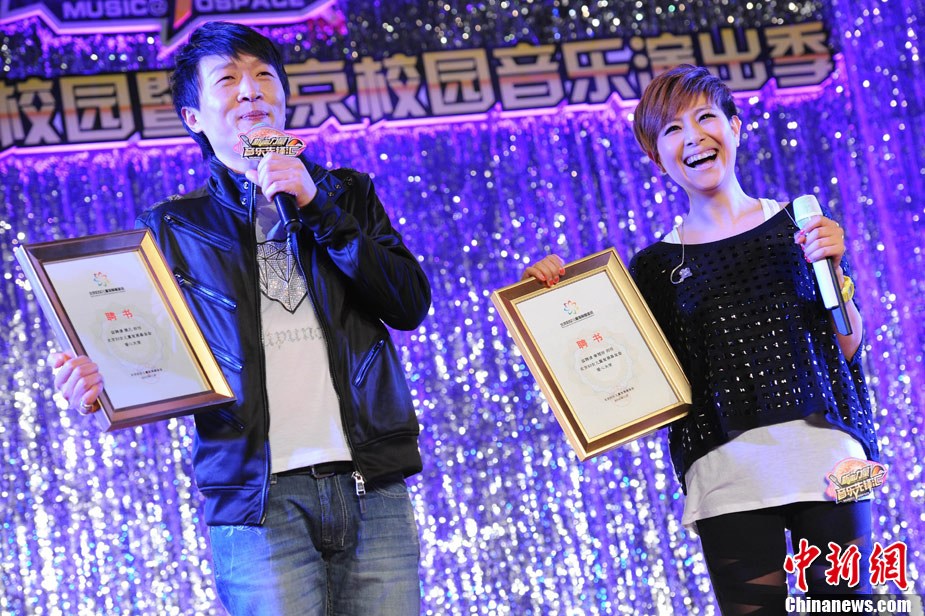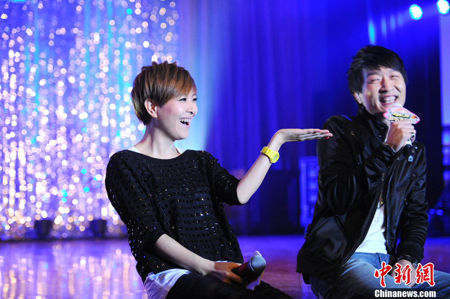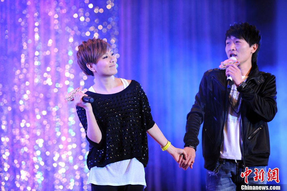 11月29日晚,2010公益進(jìn)校園暨北京校園音樂演出季活動之李慧珍&樊凡主題歌友會在北京化工大學(xué)舉行,兩位歌手為歌迷們獻(xiàn)上了一首首經(jīng)典的曲目。因演唱熱播電視劇《蝸居》主題曲爆紅的樊凡還親自譜曲了情歌《只需要一首歌》,并與李慧珍牽手甜蜜合唱,F(xiàn)場,積極投身愛心公益事業(yè)的樊凡和李慧珍還為貧困學(xué)生頒發(fā)了“媽媽的年夜飯”善款,并雙雙被北京婦女兒童基金會聘為“愛心大使”。圖為李慧珍、樊凡牽手獻(xiàn)唱。中新社記者 李學(xué)仕 攝