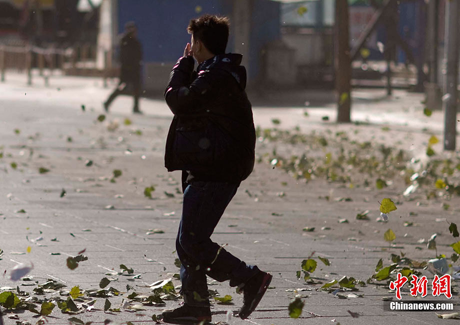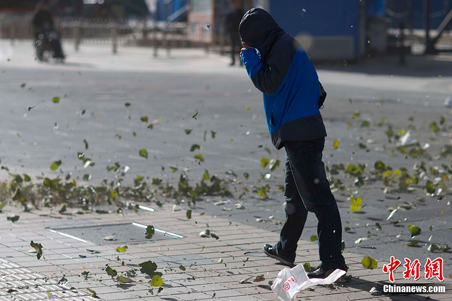 12月10日,北京迎來了大風降溫天氣。據(jù)北京市氣象臺報告,今起刮起的5至6級北風將持續(xù)到明天;受其影響,雙休日的氣溫白天最高氣溫降至0℃,夜間最低還將達到-6℃,創(chuàng)入冬寒冷新紀錄。中新社記者 盛佳鵬 攝